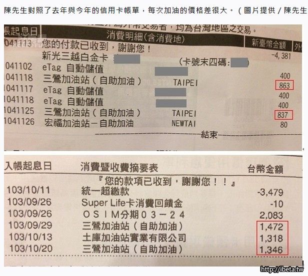 住在三峽北大特區的陳先生在內湖上班,因為擔心轉乘太麻煩且耗時太久,選擇開車通勤,來回約100公里的距離,以往一個月下來需要加油4次,40公升的油箱加滿,油槍跳停時標示的價格大都要1400元左右,總是讓他很心痛,最近一年來油價直直落,幾乎每周都要加油的陳先生很有感,以目前95無鉛汽油每公22.3元來算,每次油箱加滿只要800多元,攤開去年11月的信用卡帳單與這個月比較,光是加油的費用一個月下來足足省了2000多元,足夠支付午餐費用。