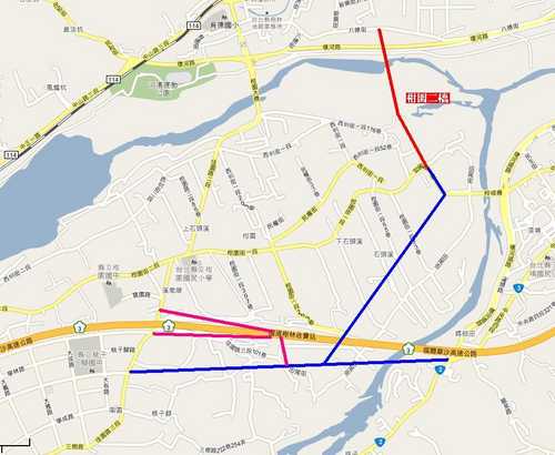 接著岔路往北,維持原方案五規劃,與柑園二橋連結。