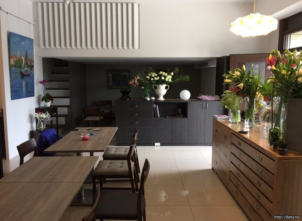 到「玖拾花藝」可以買花、喝手沖咖啡,並欣賞油畫。