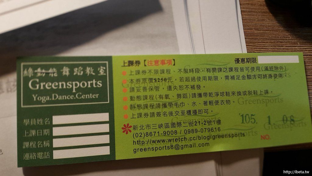 [轉讓]綠動能瑜珈舞蹈教室票券/10張一本