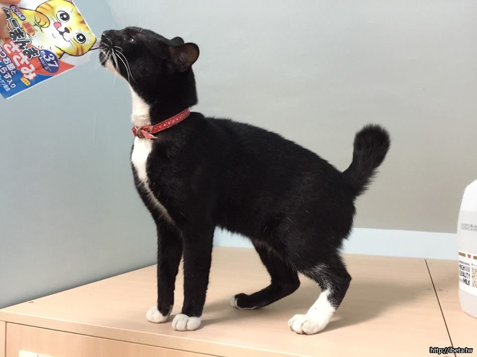 記得也是紅項圈 (幫忙檢查一下目前項圈是否過緊), 四隻腳掌也是白的.