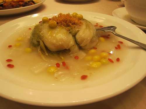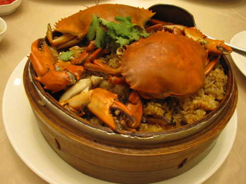 剛開始上來的米糕,飯心沒有熟透,要求再去蒸熟點;過了許久以後,菜都快上得差不多了,端上了一道全新的紅蟳米糕