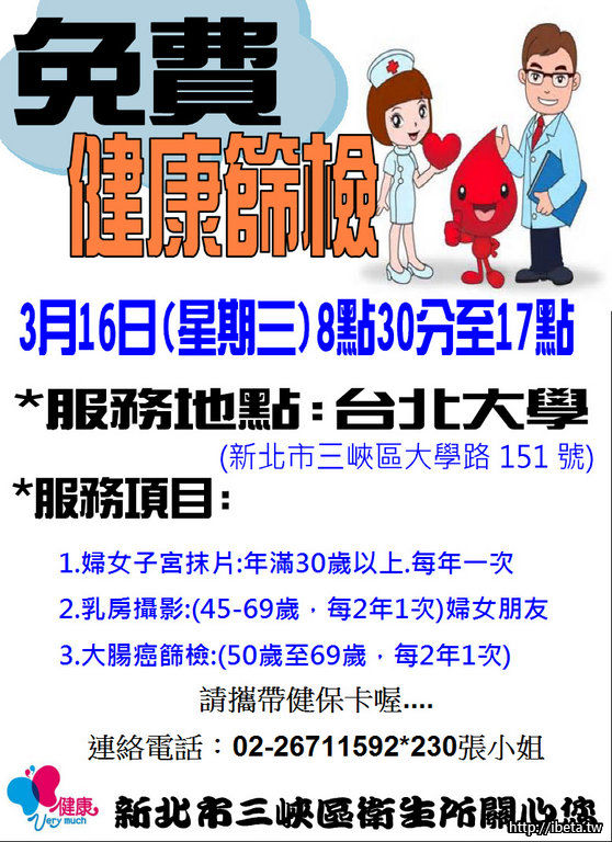 3月16日(三)三峽衛生所癌症篩檢服務-台北大學
