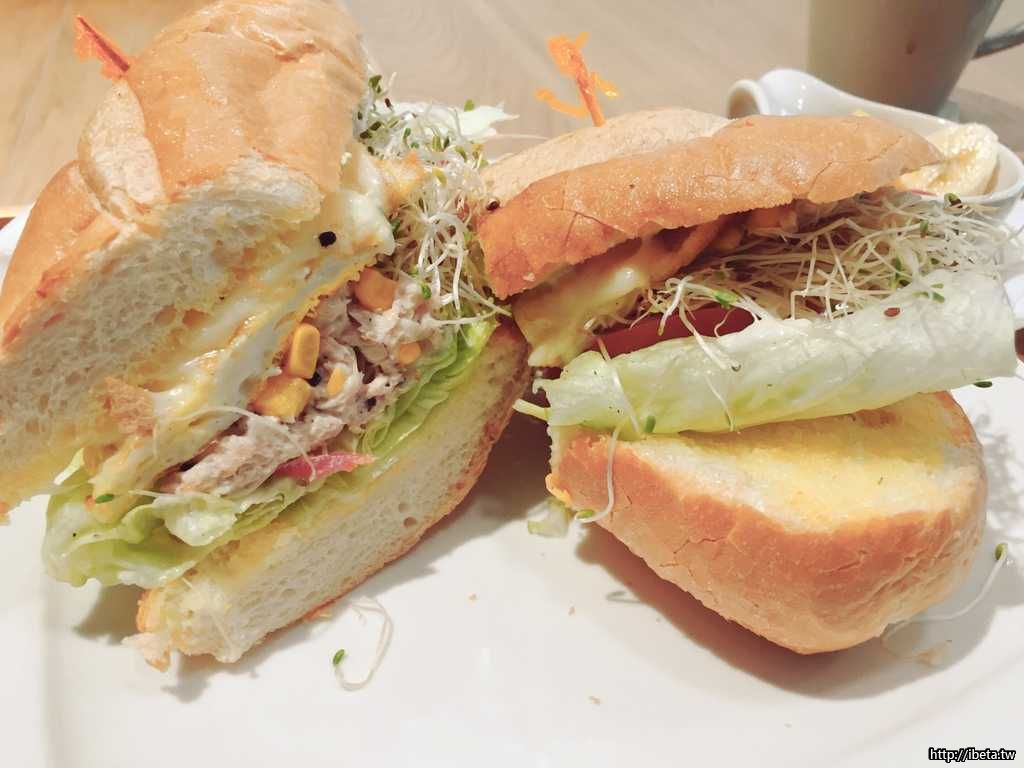 在遇到七層豪華恰巴達之前,我不愛吃苜蓿芽...沒想到苜蓿芽跟鮪魚這麼搭,外表的麵包皮像法國麵包那樣酥脆有韌性,內餡太豐富了,一個人吃不完> <早午餐我最愛這個