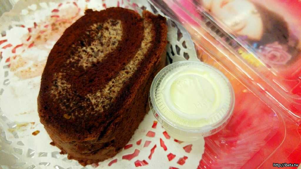 這個也是超推薦的~重巧克力瑞士卷,裡面有脆片,超驚奇巧妙的口感,一樣也有附上特別的沾醬