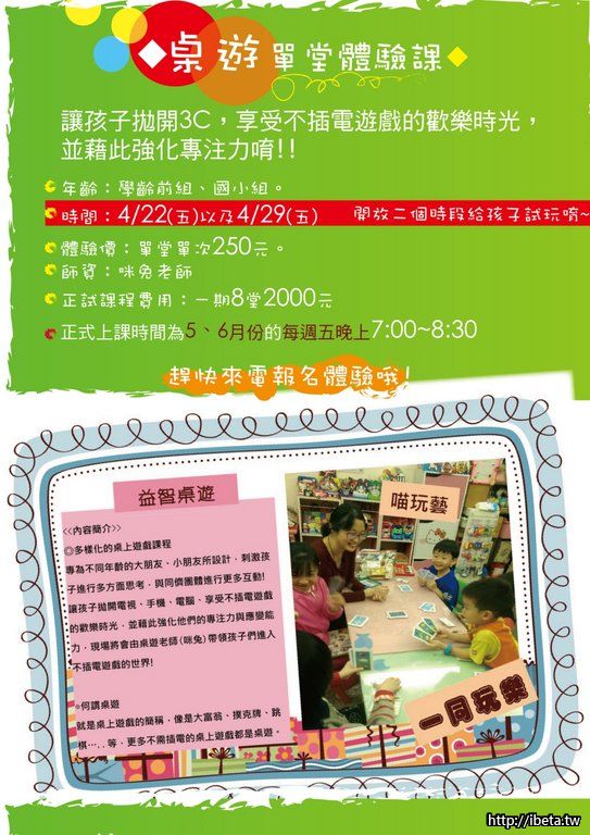 開放二個時段給孩子試完唷~