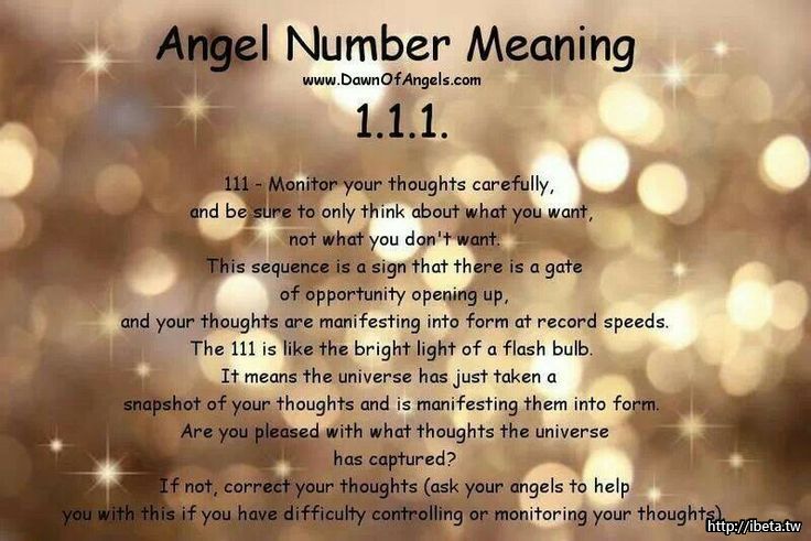 111:1是合一,與萬事萬物宇宙合一。來自宇宙源頭的能量,一種連鎖效應的力量,會將你此刻的思想意念顯化在你的物實實相中。所以要靜心,注意自己當下的思想,保持樂觀。將焦慮和恐懼交付出去,避免討論負面的可能性,專注在你真正的渴望上。