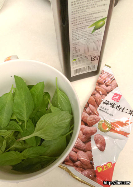 羅勒葉 松子 蒜頭 橄欖油 鹽巴