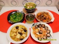 海苔鮭魚凍、麻油香菇猴頭菇、 粉絲蔬菜燙