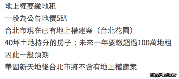業界就指出,中南部房價沒有台北那麼高,地上權住宅案的價格差異,相較之下也就沒那麼大,若像台北市中心每坪房價動輒百萬元以上,那地上權住宅案價格就會很有優勢;但因市中心土地難尋,地上權住宅案未來仍將是焦點之一,預估至少得再等5年,推案才會熱起來。