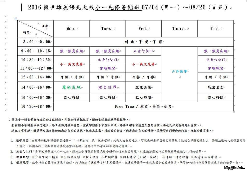小一先修新生夏令營