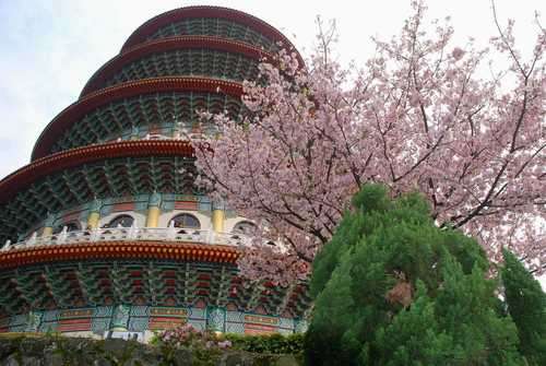例如淡水天元宮栽植的就是吉野櫻,以及阿里山火車鐵道附近
