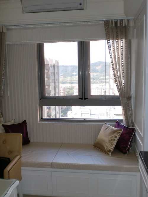 窗邊櫃 : 上面加墊子,底下做收納, 一個大人可以躺在上面.