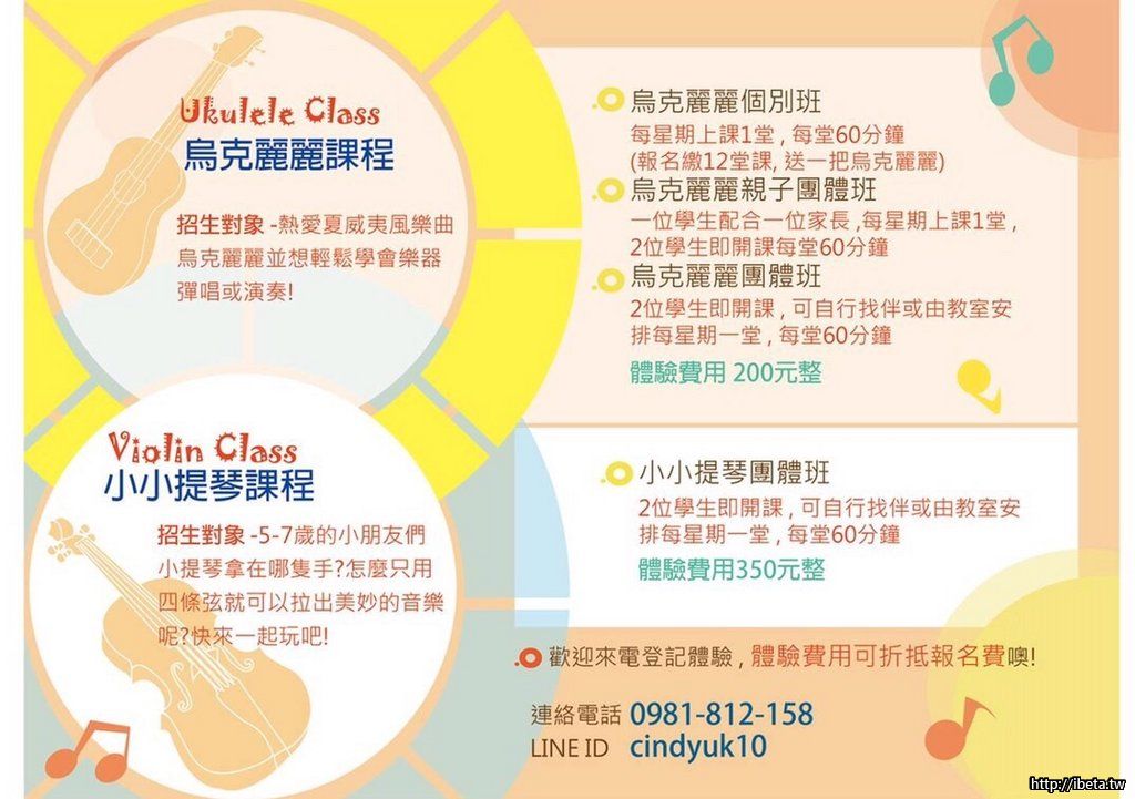 暑期烏克麗麗與小提琴班開始報名了(個人班送烏克麗麗..