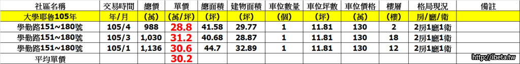 可以看到103、104、105年的平均單價
