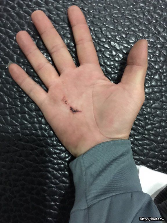 一個不小心,幫拿鋁基座的踉蹌,害得師傅的手被我挫傷了...><