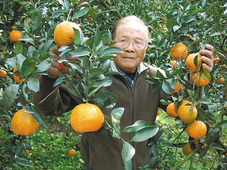 大溪觀光果園業者陳順榮建議遊客,摘採柑橘時,宜挑選果實圓胖、果皮金黃、橙色,果實底部凹陷,沈重有分量的最佳。