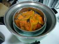 * 南瓜洗淨 切塊 放入電鍋蒸熟