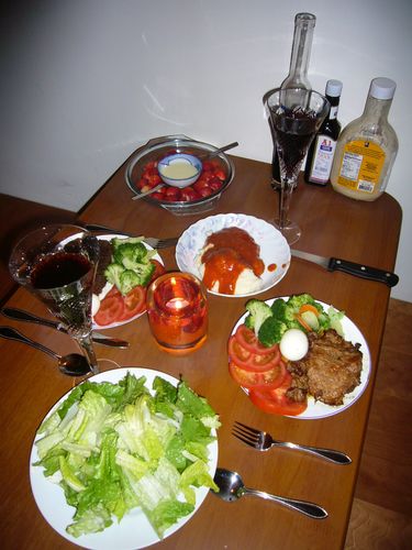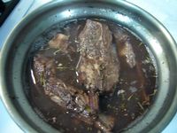 * 先醃過, 材料: 拿不好喝的紅酒拿來利用 迷迭香 A1牛排醬也加一點