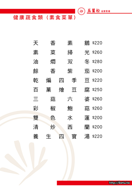 [*]詳細資訊請參考 五葉松庭園餐廳 facebook臉書專頁