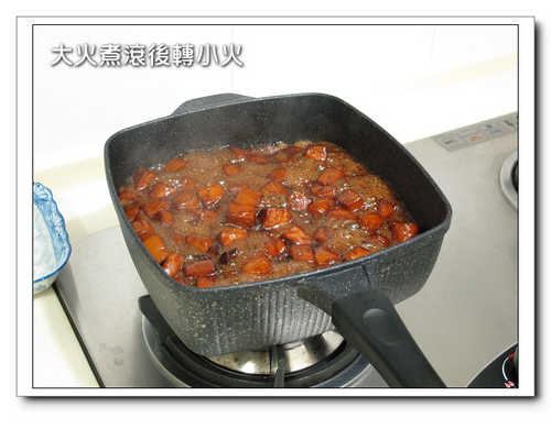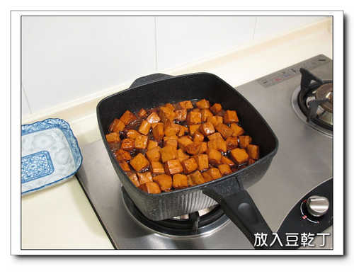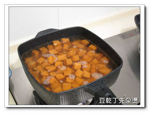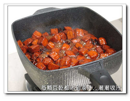 不要開太大的火,以免豆乾表面硬了中間還沒滷到..