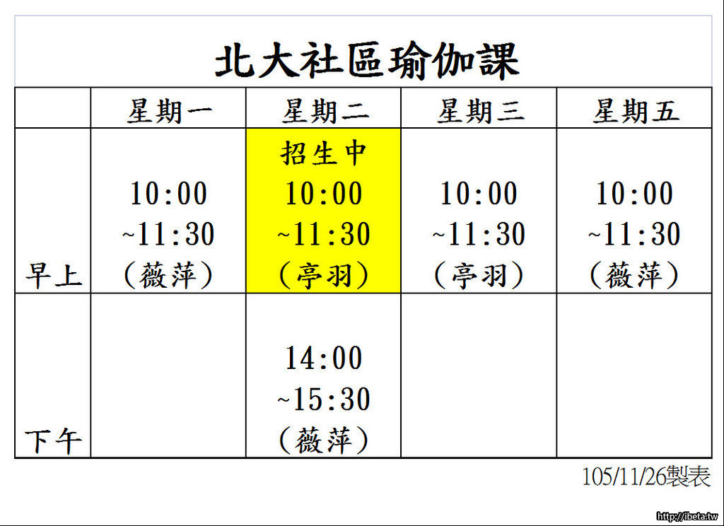 北大社區瑜伽課新增班招生中~