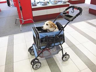 「汪汪!」偌大的購物商場,卻傳來陣陣狗叫聲?環球購物中心中和店專櫃「Pet Plus寵物達人」提供的「寵物推車」服務,讓賣場成為狗狗的樂園,消費者不用擔心逛街購物時寵物被冷落,就算是大型拉不拉多犬也能跟隨主人趴趴走。