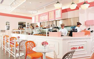 位於六福村美國大西部的elite deli,以粉紅色系及圓形圖騰表現品牌的年輕活力,金牌主廚陳清海以關西當地的特產如紅茶、金桔、柿餅及仙草,創造出全新的明星商品,包括關西紅茶乳酪蛋糕麵包、仙草凍奶茶、朝陽香橙金桔杯子蛋糕等,約35元至50元。