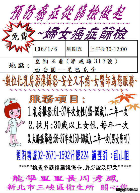 三峽衛生所1/6(五)社區癌症篩檢-學成路