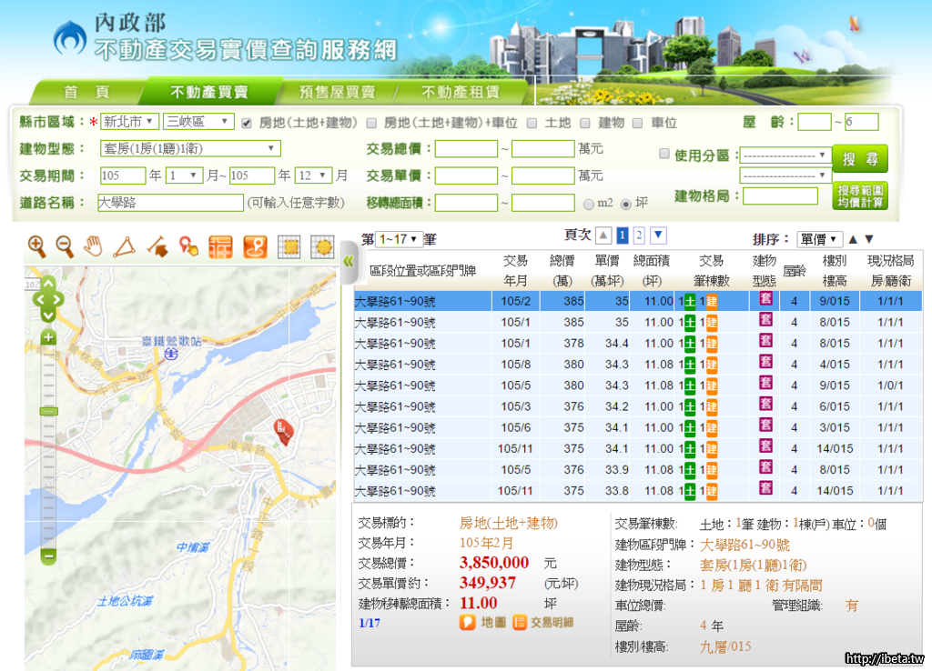 房市淒風苦雨,但根據實價資料,位於三峽北大特區大學路的耕讀園,近兩年成交多達65戶。此一社區有500多戶,預售時成交價每坪16~19萬元,總價180~210萬元,近一年轉手,成交行情都在32~34萬元,總價落在360~380萬元之間,和四年前價格相比,多有8至9成漲幅。