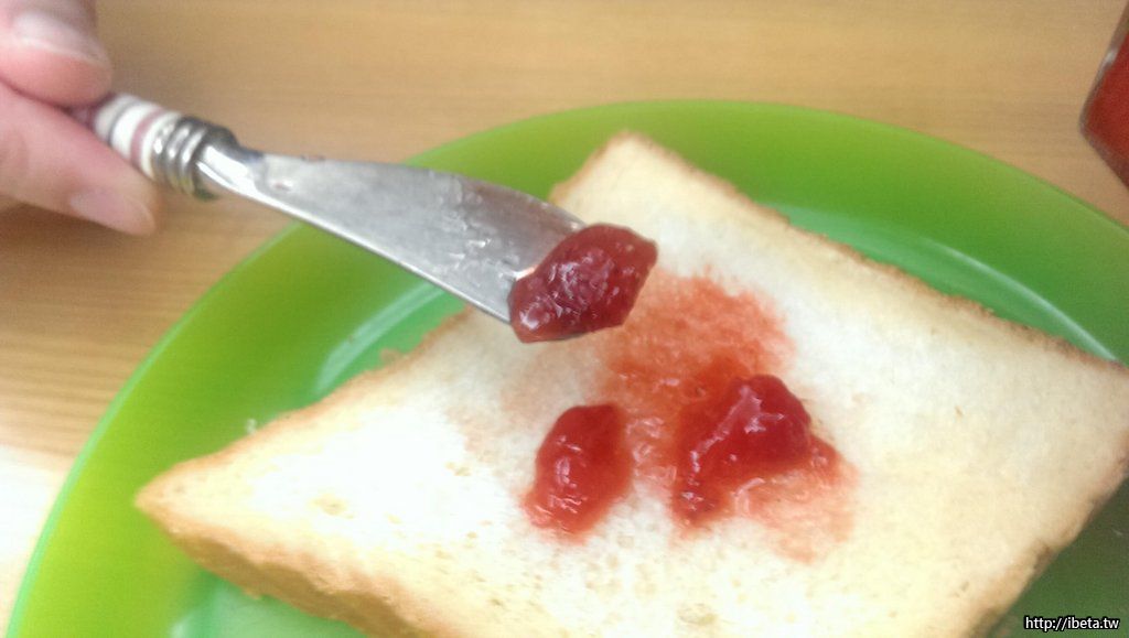 自製牛奶吐司加上自製草莓果醬(做出來變很少很少的醬...)