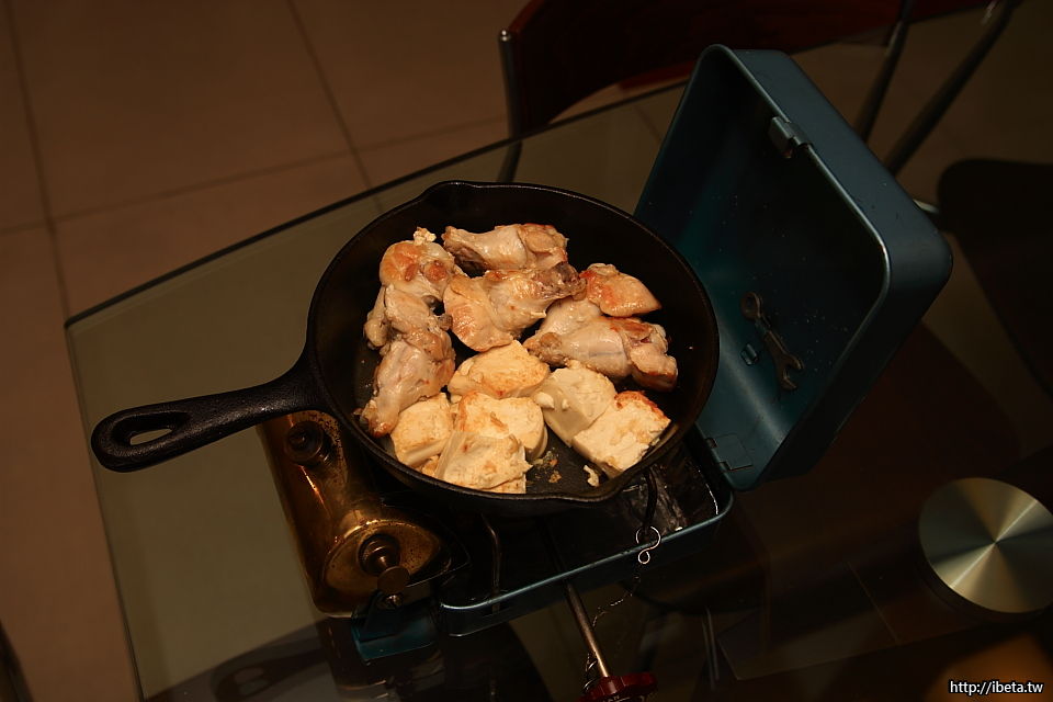 利用逼出的雞油, 順煎豆腐、豆干、杏鮑菇.... 等,適合當滷味的食材。