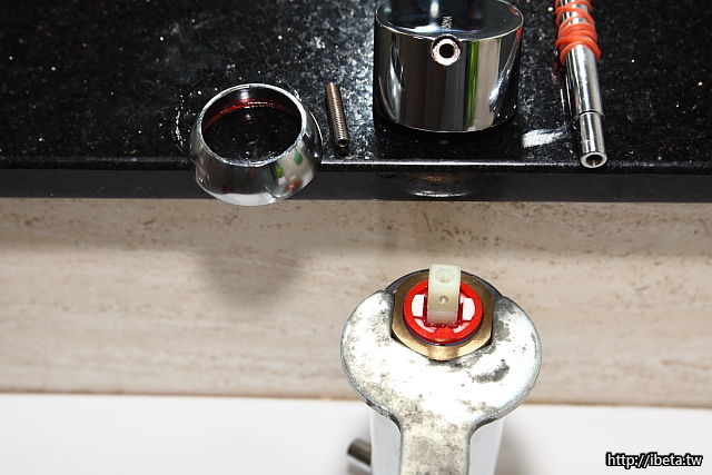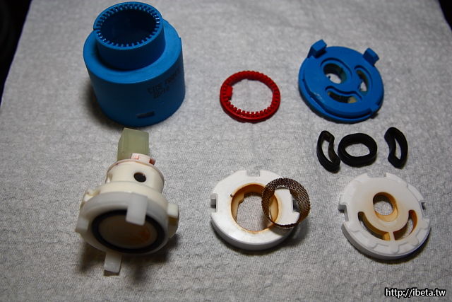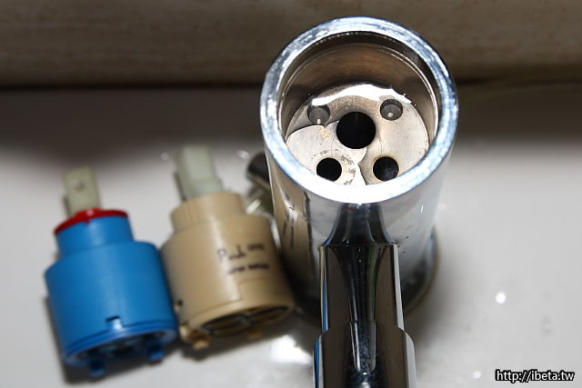 這類的龍頭,外觀主體,除非遭暴力的破壞之外,應該不易損壞。而進止水切換,全由內部這瓷閥模組控制,這模組應屬消耗品,換掉即是