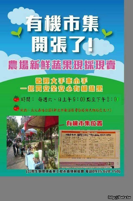 [蒙行政院農業委員會農糧署及新北市政府農業局輔導樹林市農會及台灣生物環境產業工程永續發展協會合辦,樹林市公所協辦下,以有機產品訴求為主的樹林有機農夫市集成立了。]
