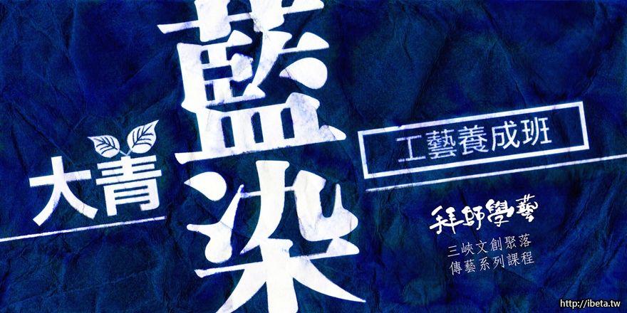 課程特色:認識大菁、各種技法介紹、實做綁紮課程、認識三峽藍染、可自由發揮作品
