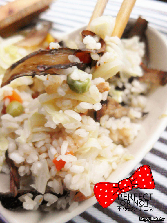 不.完美.手工坊|爽口牛蒡高麗菜飯。
