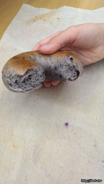 放很多藍莓後,雖然貝果口感依然~但是它的樣子好像瘀青了!!{:4_167:}