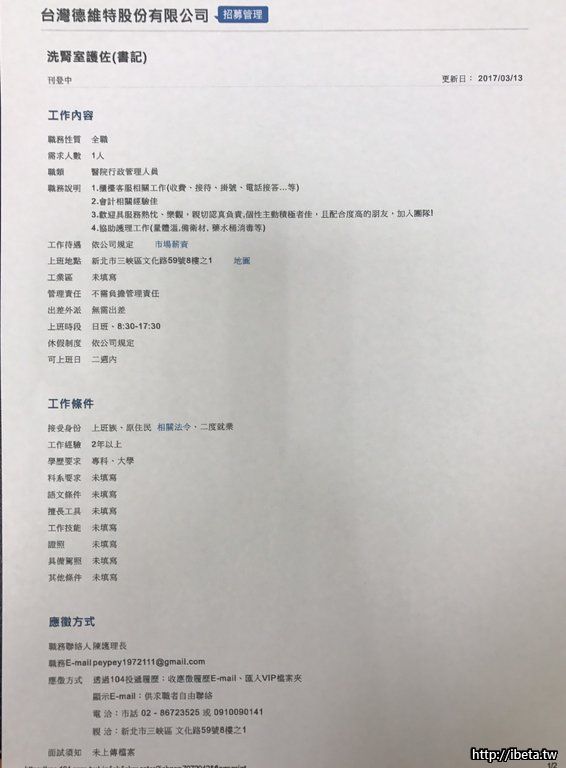 工作地點:新北市三峽區文化路59號8樓之1。(老街麥當勞對面)