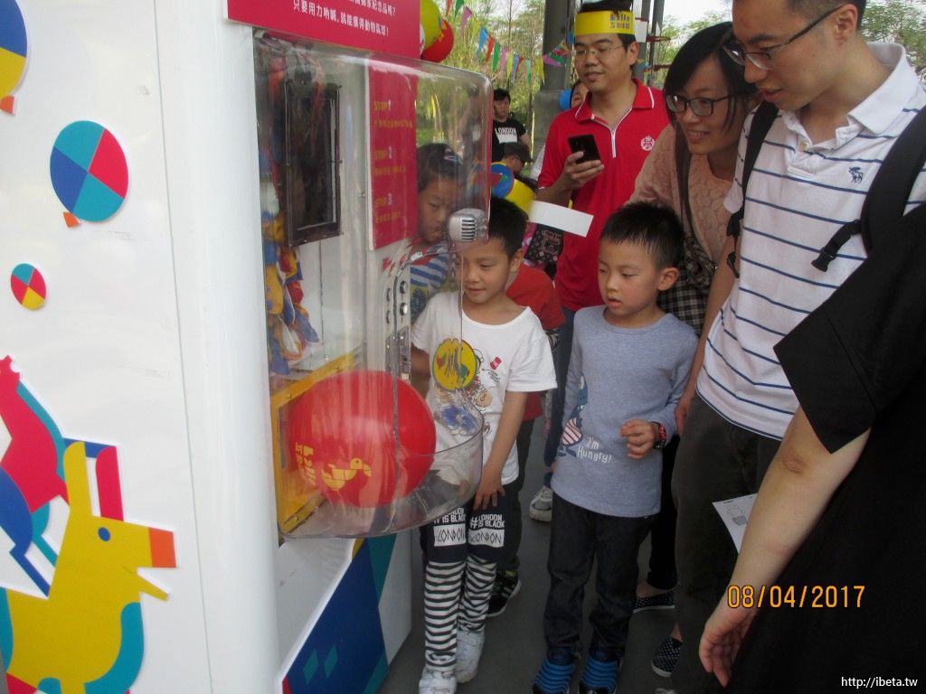 看到許多家庭的年輕父母帶著孩子,還有祖孫三代,很有秩序地排隊玩遊戲,