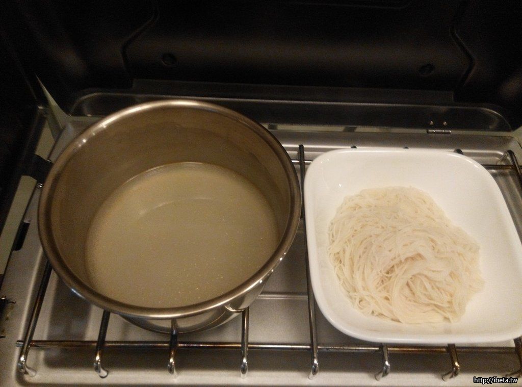 野外露宿我是不插電、不接水的,自給自足,一鍋水可要善盡利用。這鍋水燙煮完麵線,也還不要倒,還有第三用途!