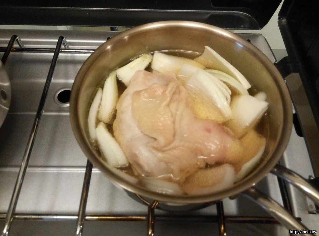 STEP 1. 因是清燉,不喜湯汁污污濁濁的。燒鍋水,將雞腿肉川燙(可依喜好及份量選擇其他部位或剁塊)