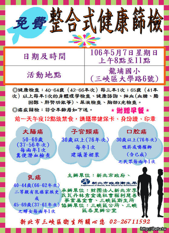 5月7日(日)三峽衛生所免費成人健檢-龍埔國小