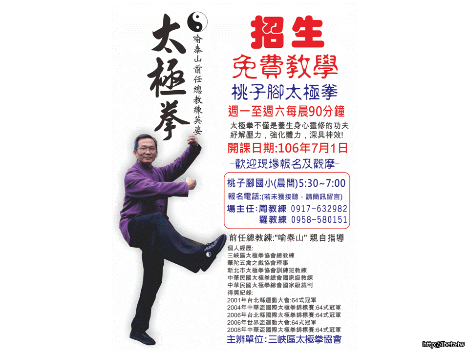 太極拳桃子腳晨間班免費教授7/1開課喻泰山指導