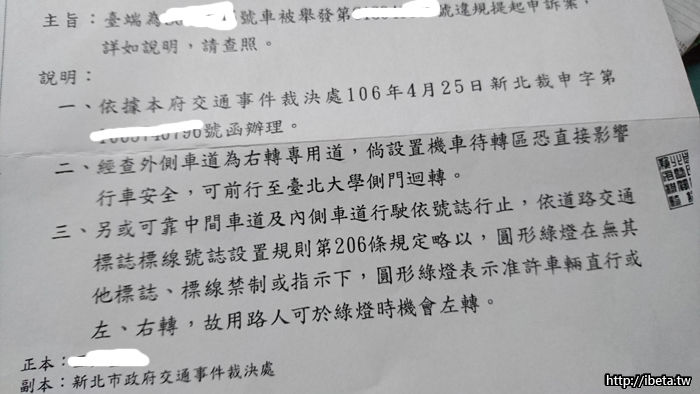 建議將新北市政府裁決的文轉給當地的民意代表,請他們協助幫忙到場了解,或是請社區管委會互相聯合發文給民意代表,否則沒有實地堪察的官員總是不了解民眾每天在用路上為了安全與道路標線,標誌規劃不良,而拉扯,其實這跟樹林二高下的涵洞行車標誌一樣,請他們在上下班的車流多的時候來堪察一下