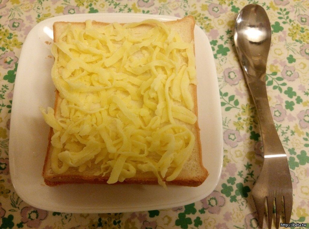 上層土司鋪滿乳酪絲,最好中間壓陷一下。