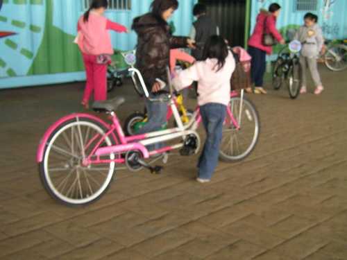 有小小朋友的四輪車,也有小朋友的兩輪自行車