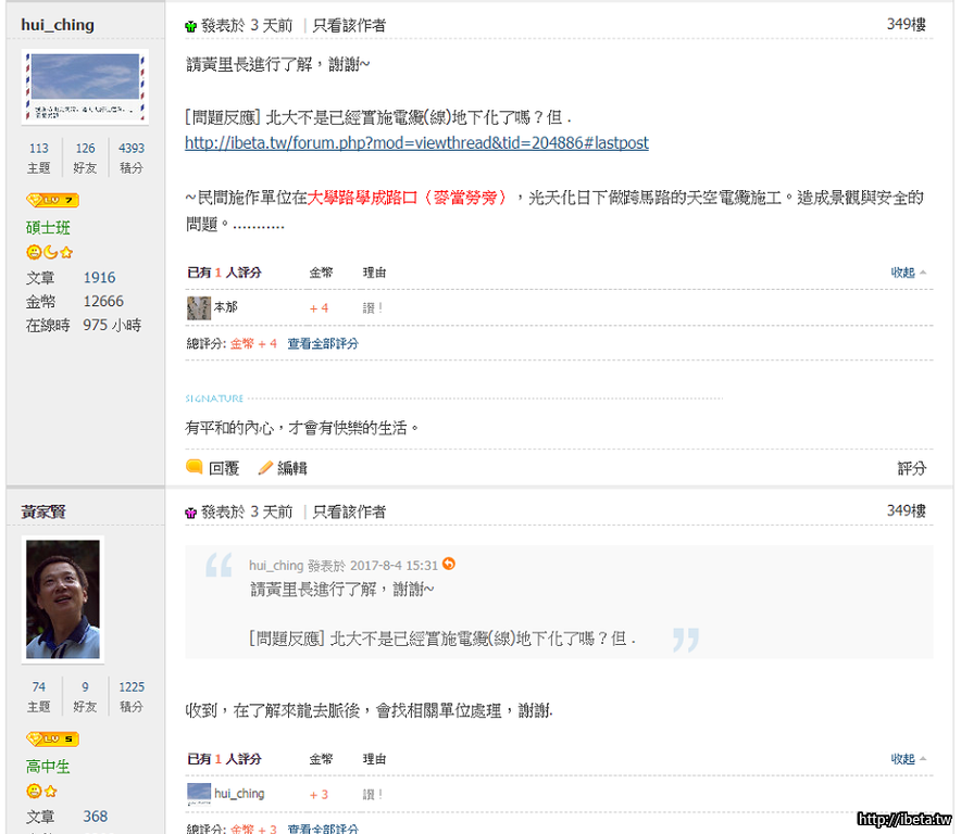 我們搬來北大,就是因為有整齊的街道,舒適的環境空間,這樣下去,有一就有二,之後業者圖方便,一定都會跟進亂牽。希望北大區域各里長們都可以幫忙反應,我們自己居住的地方要靠自己守護!