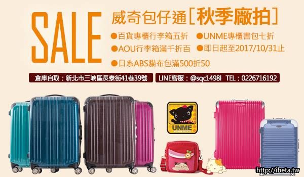 二、新生代。台灣行李箱「AOU」滿1000折100。