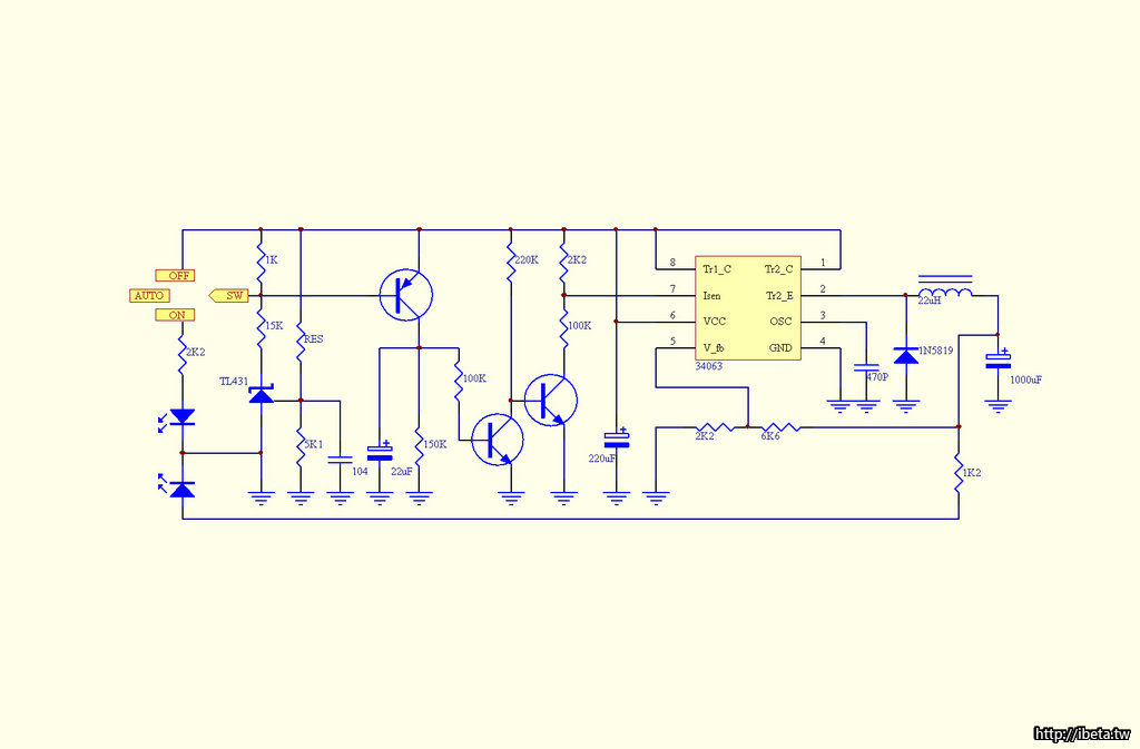 極精至簡....傳統不死老零件,TL431做電壓偵測;13.4V以下判斷為車未啟動(發電機無作動),13.4V以上為已發動(發電機已動作)。TL431控制著34063 SPS 5V電壓輸出。