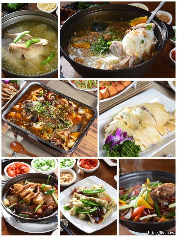 招牌推薦的菜色有:川味烤魚、白斬雞、古早味滷肉、招牌米粉湯、干鍋肥腸、佛跳牆...等